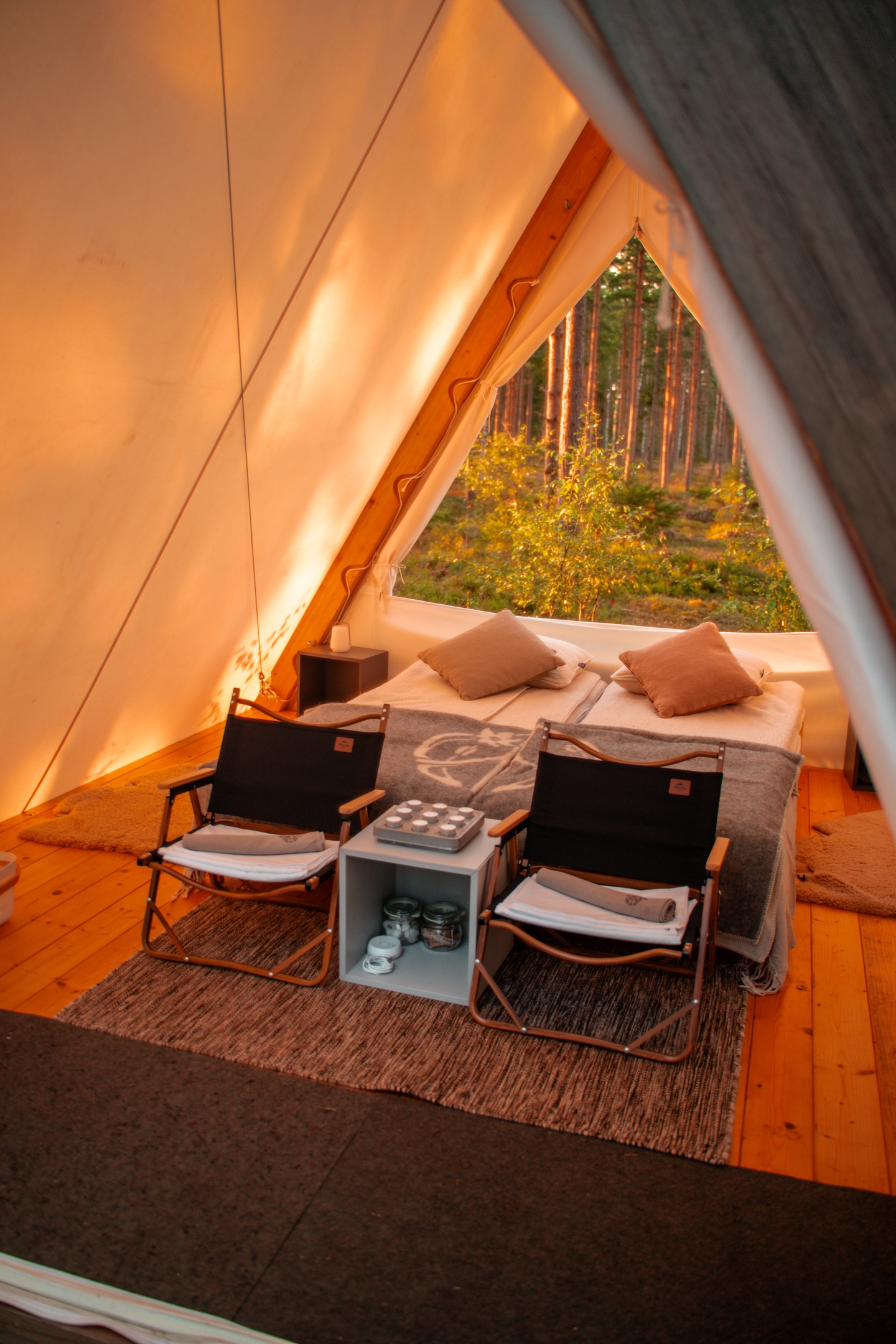 Vi välkomnar våra gäster med öppna armar på Happie Camp, men vi har en åldersgräns på 10 år för boende. Detta är mest för säkerhetens skull, eftersom vi inte har anpassat platsen för de yngre. Och kom ihåg, många av våra gäster kommer hit för att njuta av den lugna och avkopplande atmosfären i skogen. Vi hoppas att du har förståelse för detta!